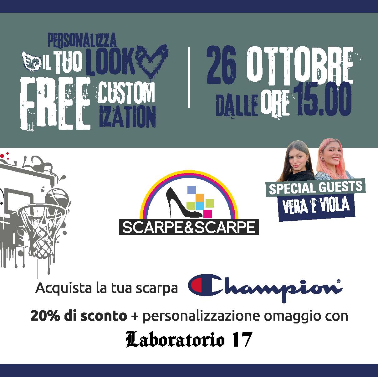 Da Scarpe&Scarpe Grande evento Champion! Ti aspettiamo domenica 26 ottobre dalle ore 15, acquista una calzatura Champion e ricevi sconto 20% immediato + personalizzazione gratuita con Laboratorio 17!